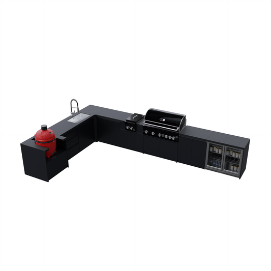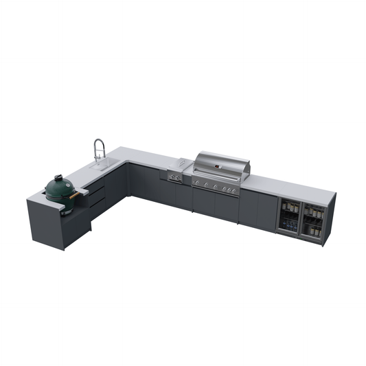Maximise your garden space with an L-shaped outdoor kitchen. Designed for efficiency and ease, this layout combines prep space, storage, and grilling in one smart corner design. Whether you're hosting or cooking for the family, it brings everything you need within arm’s reach.