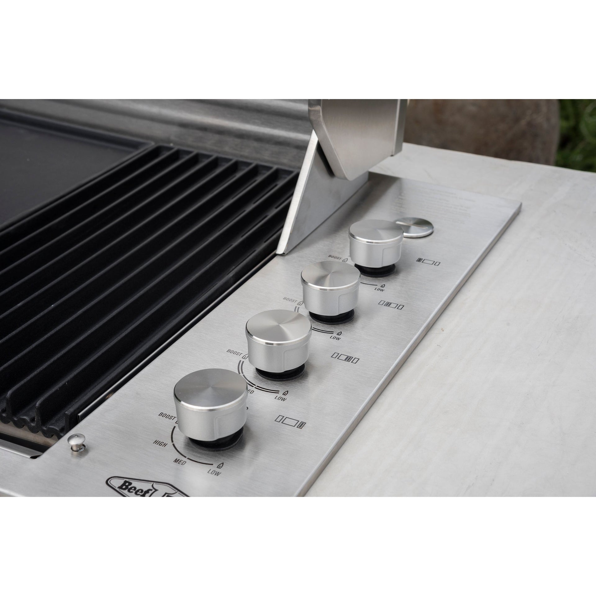The Proline Series gas BBQ is known for it's quality, advanced features, and reliable performance. The flat lid design usually represents a lid without a domed or curved shape, often providing a sleek and modern appearance.