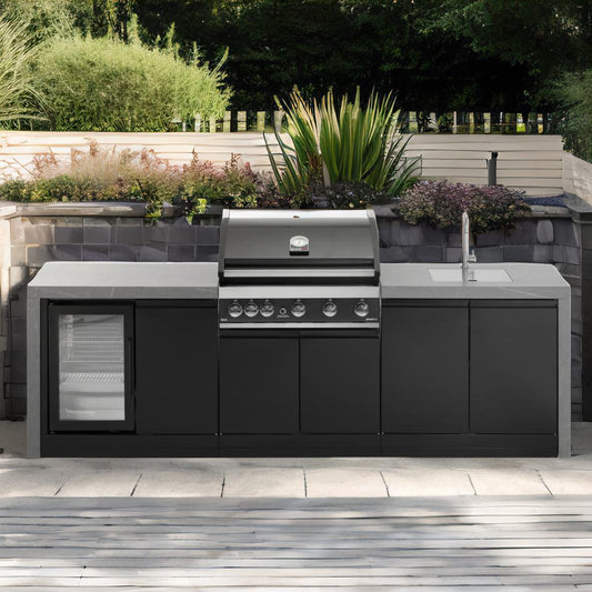 Strike the perfect balance with a medium outdoor kitchen. Designed for mid-sized spaces, this setup offers smart storage, prep surfaces, and cooking power, all built to last in the great outdoors.