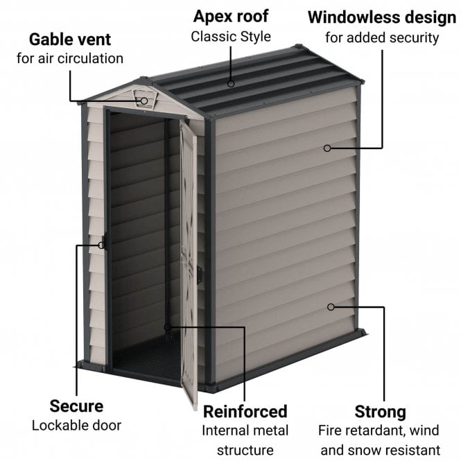 The Saffron Apex Plus Shed is a reliable, maintenance-free storage solution designed for easy installation and built to withstand harsh weather conditions.