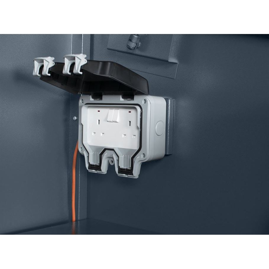 Transform your outdoor storage with the innovative Asgard Access E-Plus, specially designed for electric bikes and power tools. This premium unit combines secure storage with convenient charging capabilities.