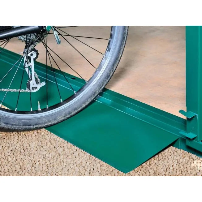 Thanks to its double-door entry, head clearance up to 6ft 4", and included ramp, storing and removing bikes is effortless. The shed comes fitted with an integral rear bike rack to hold each bike individually upright, helping prevent scuffs and simplifying access.
