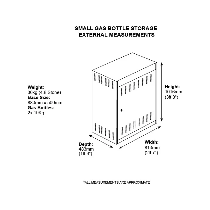 Developed in partnership with Calor Gas, the Asgas 38 is a compact, weatherproof metal unit designed to store two 19kg propane bottles safely and discreetly. Constructed from thick, galvanised steel panels, this gas bottle store is both robust and fire-resistant, offering secure storage with built-in ventilation and easy access.