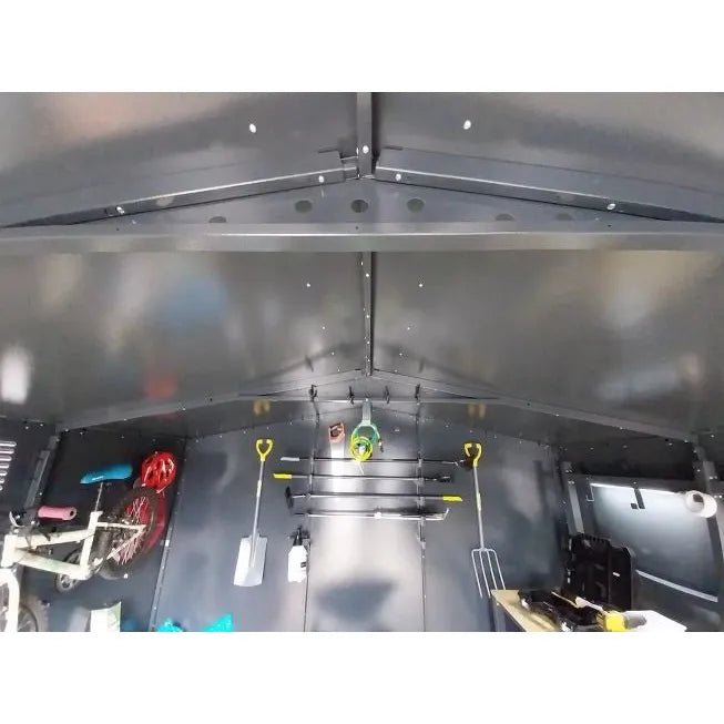 🛠️ Smart Ventilation & Optional Upgrades Asgard’s ventilation system reduces condensation build-up with roof and side vents. Add guttering to collect rainwater or install our light gantry system for mains lighting. Accessories like bike hangers, ladder racks, and extra shelving can be easily added using the pre-drilled internal mount points.