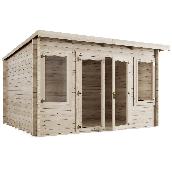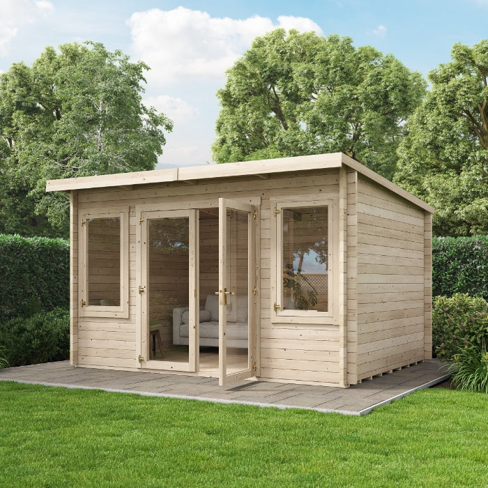 Transform your outdoor space with the contemporary Ashley Pent Log Cabin - where modern design meets premium functionality. Perfect for home working, relaxation, or pursuing your hobbies in style.