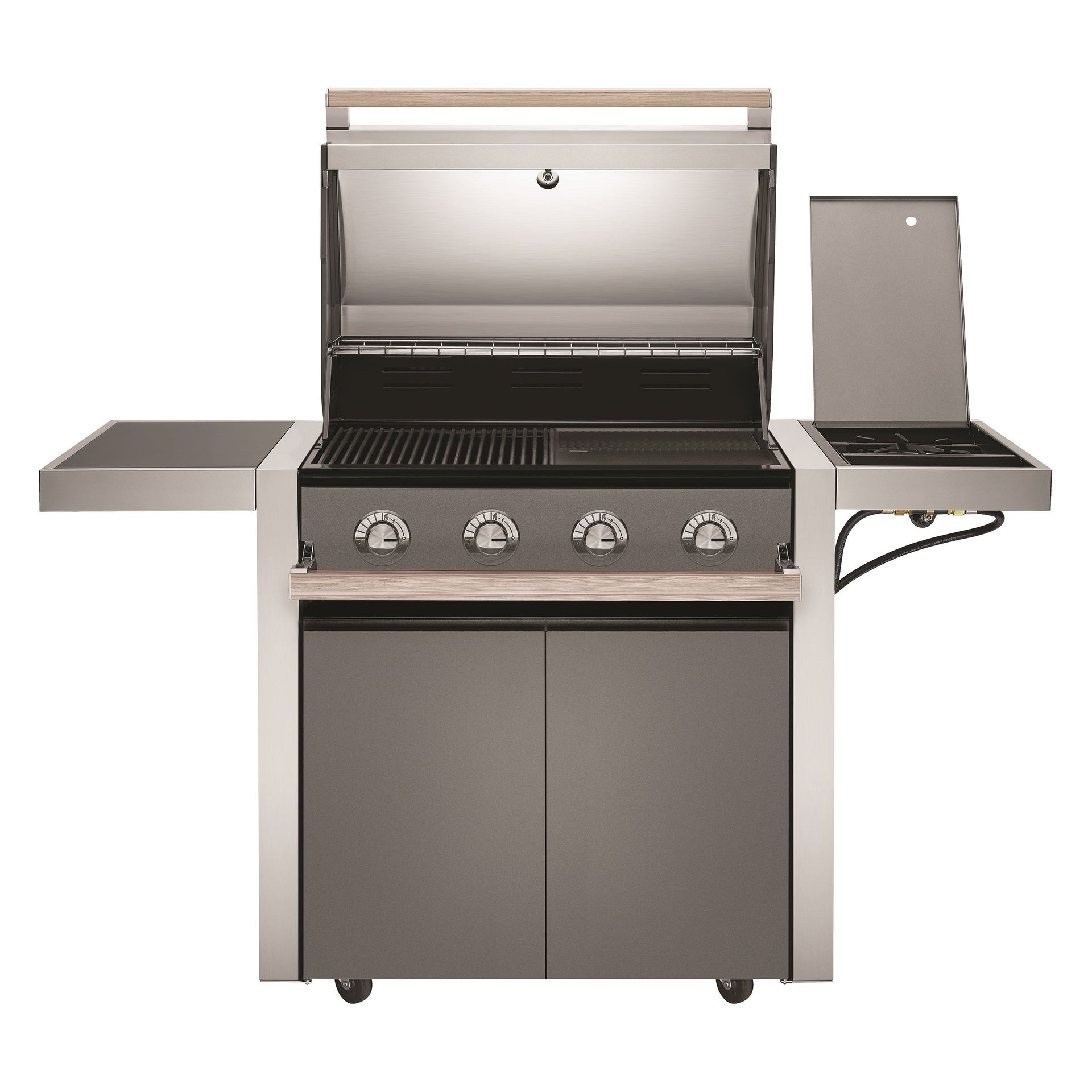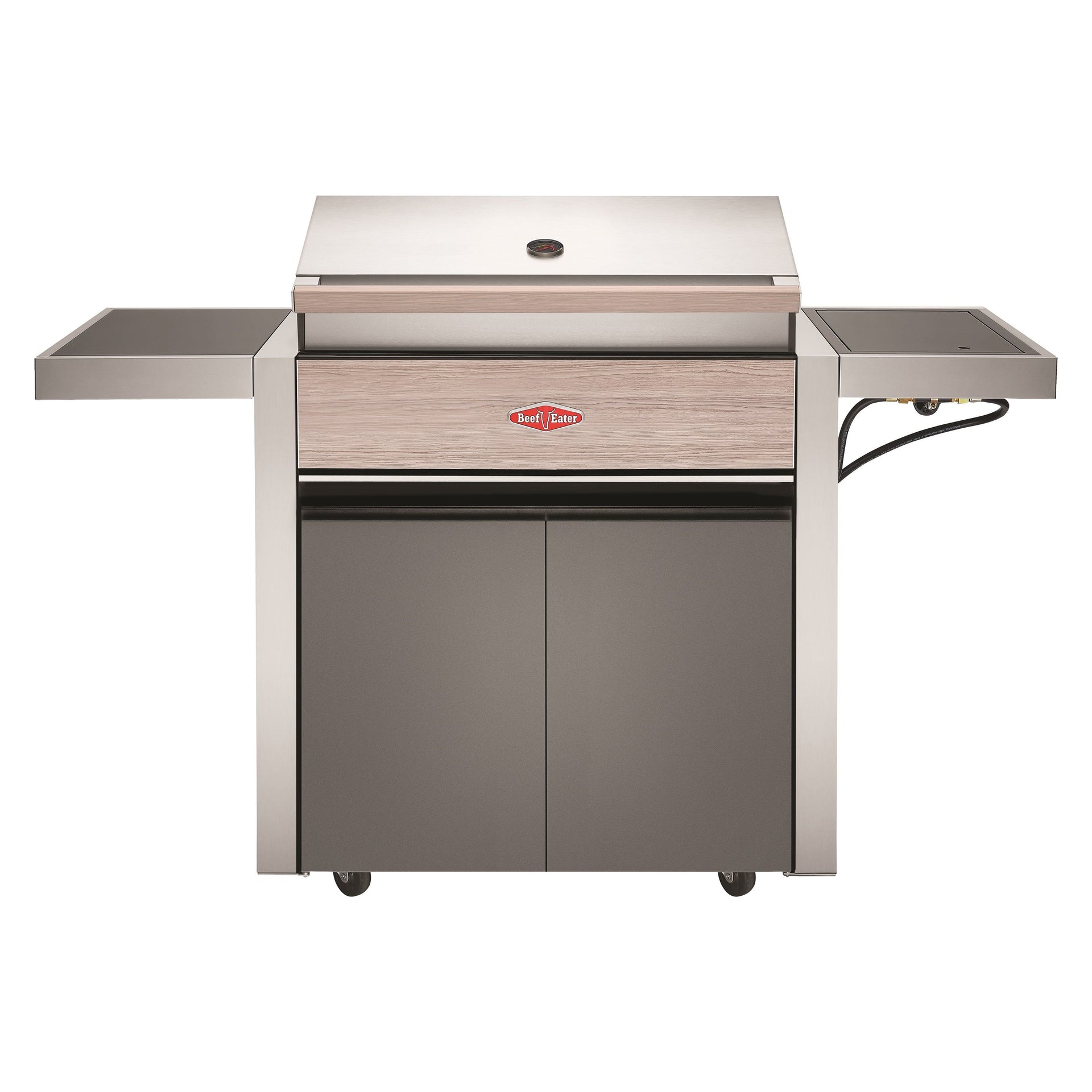 BeefEater 1500 Series: Designed with a cover panel resembling wood, this grill effortlessly blends into various surroundings. Featuring a quartz start ignition system, cooking becomes quick and hassle-free with every use.