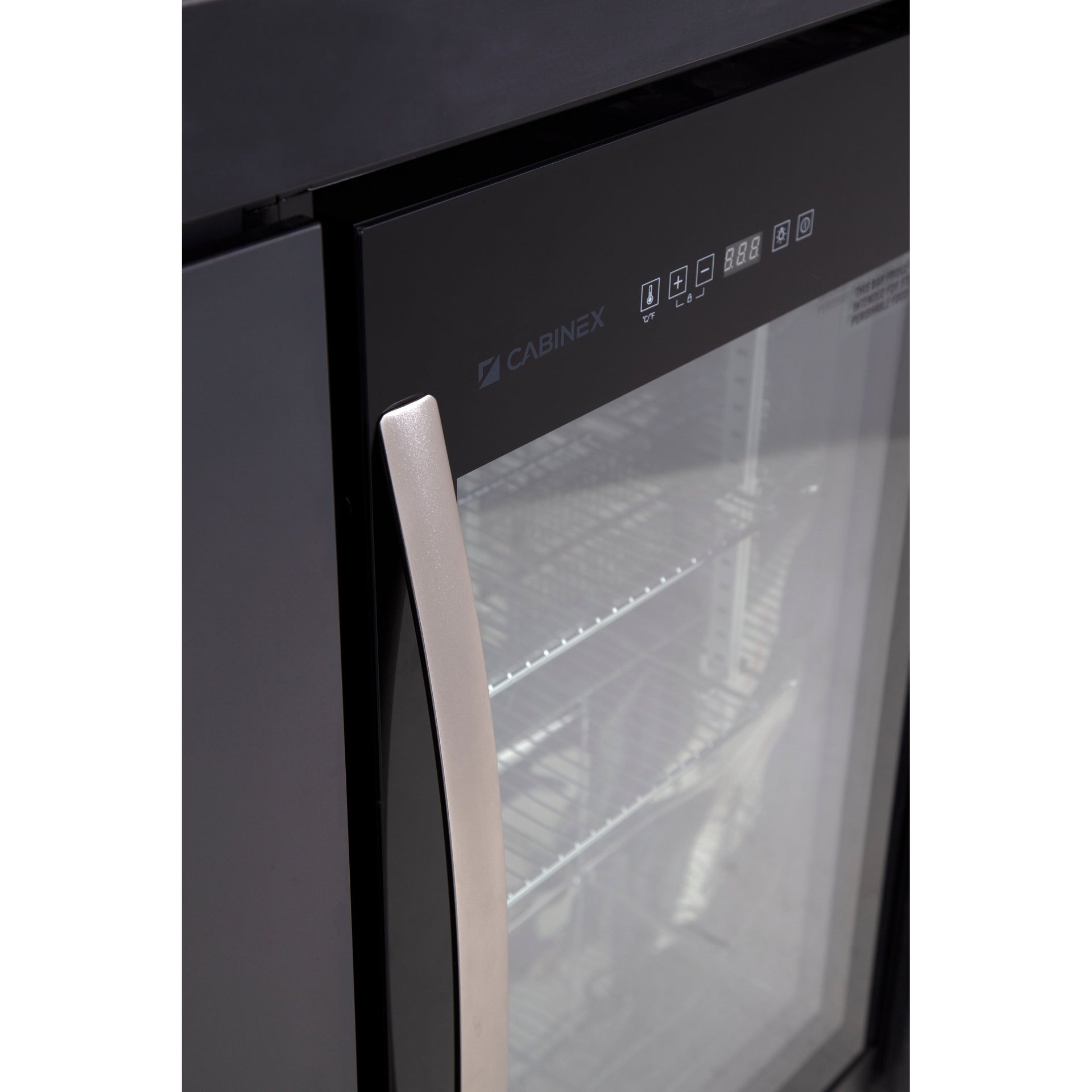 The integrated fridge is included to offer a dedicated space for keeping beverages, condiments, and other items cool and accessible during outdoor gatherings.