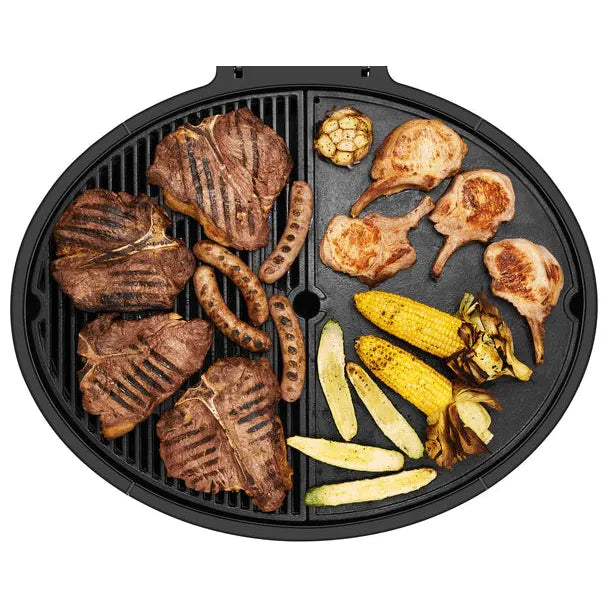 An oversized cast iron surface with a rust-resistant enamel finish offers ample space for grilling. Use the BBQ hood up for open-flame cooking, or down for convection-style results. Cook more, your way.