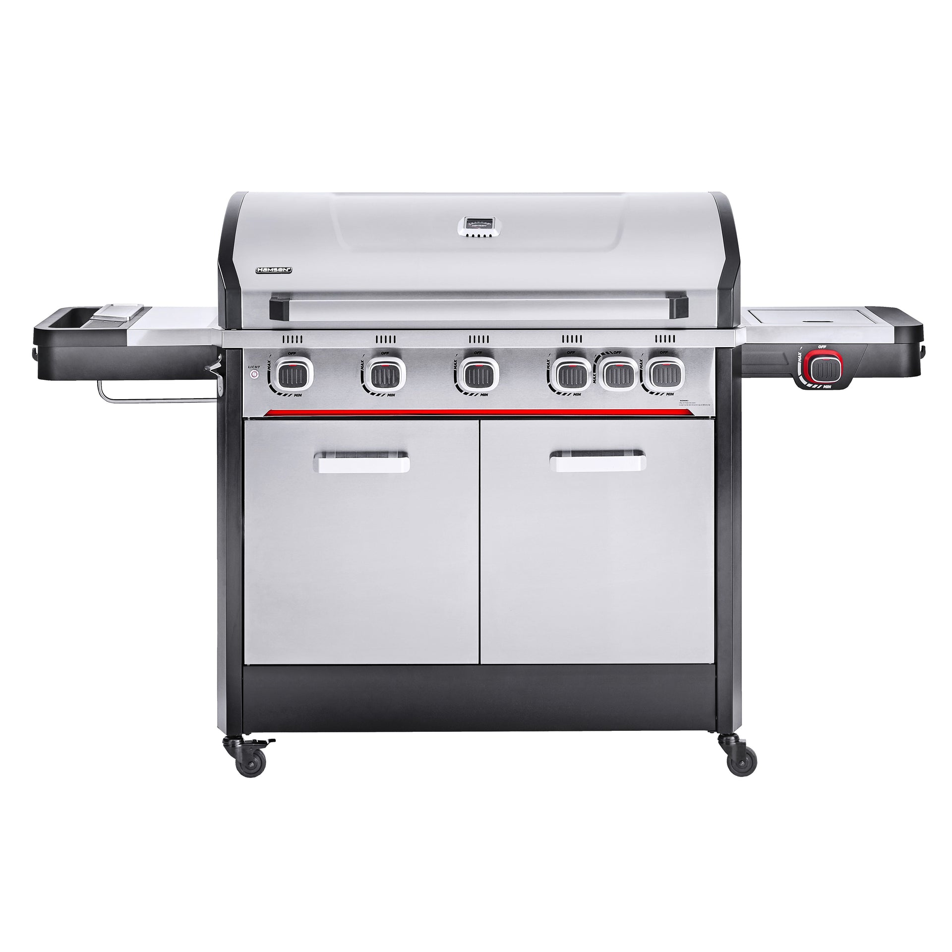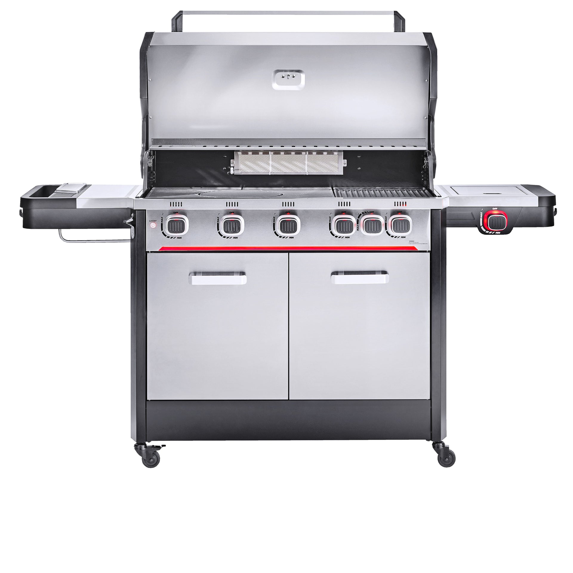 The Byron 5T+ is a high-performance stainless-steel gas barbecue built for serious outdoor cooking and effortless entertaining. With five powerful main burners, an infrared back burner and a recessed side burner, it delivers outstanding versatility for grilling, roasting, rotisserie cooking and sauce preparation. Combining precision heat control with a spacious cooking surface and premium features throughout, the Byron 5T+ transforms every barbecue into a professional-level experience—perfect for family meals, garden parties and confident hosting.