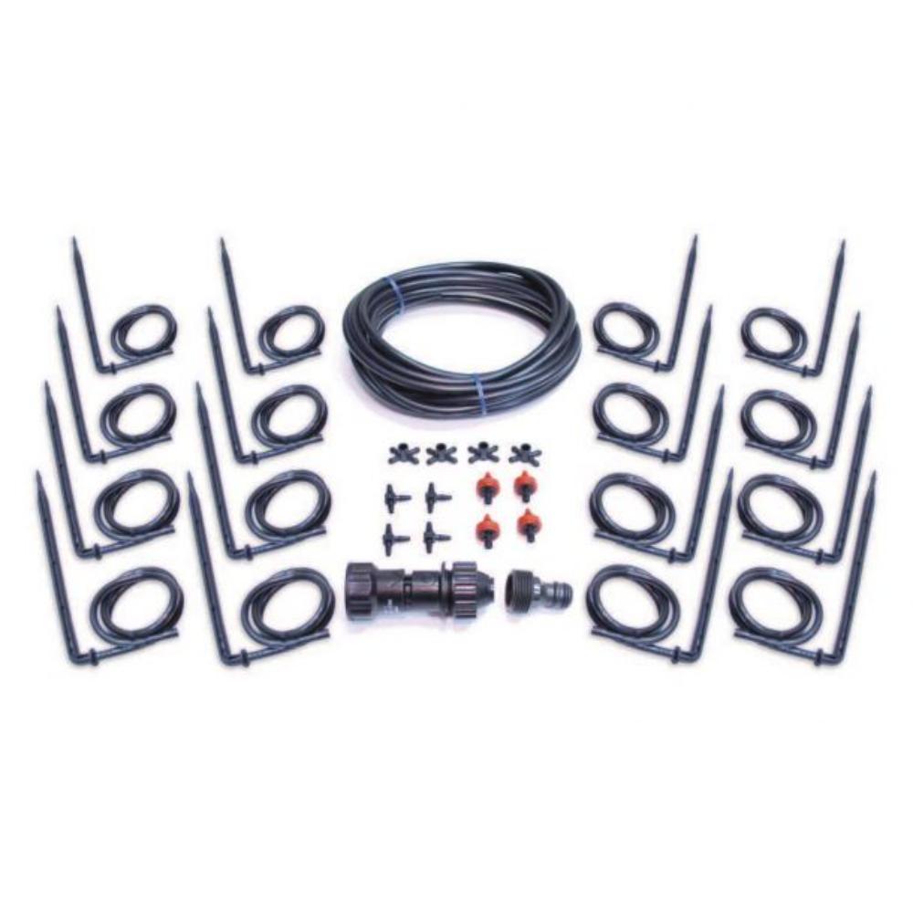 The Drip Irrigation Kit ensures consistent hydration for your greenhouse plants. Connectable to both manual and automatic irrigation systems, it evenly distributes water while filtering out sediments. Easy to install and use, this kit promotes the flourishing of your plants.