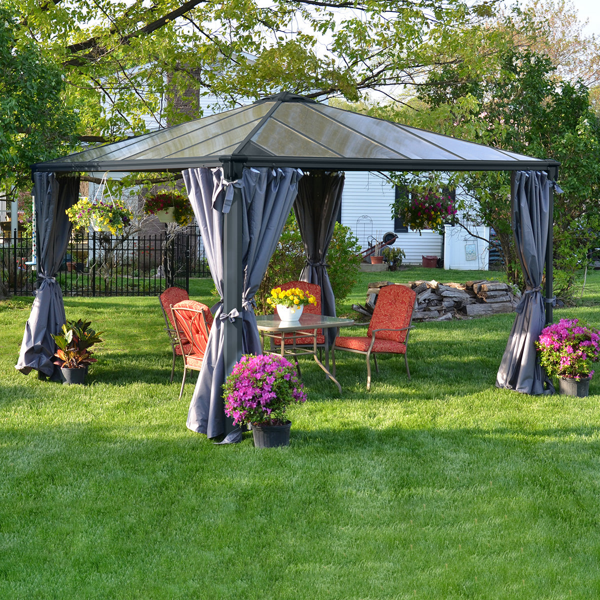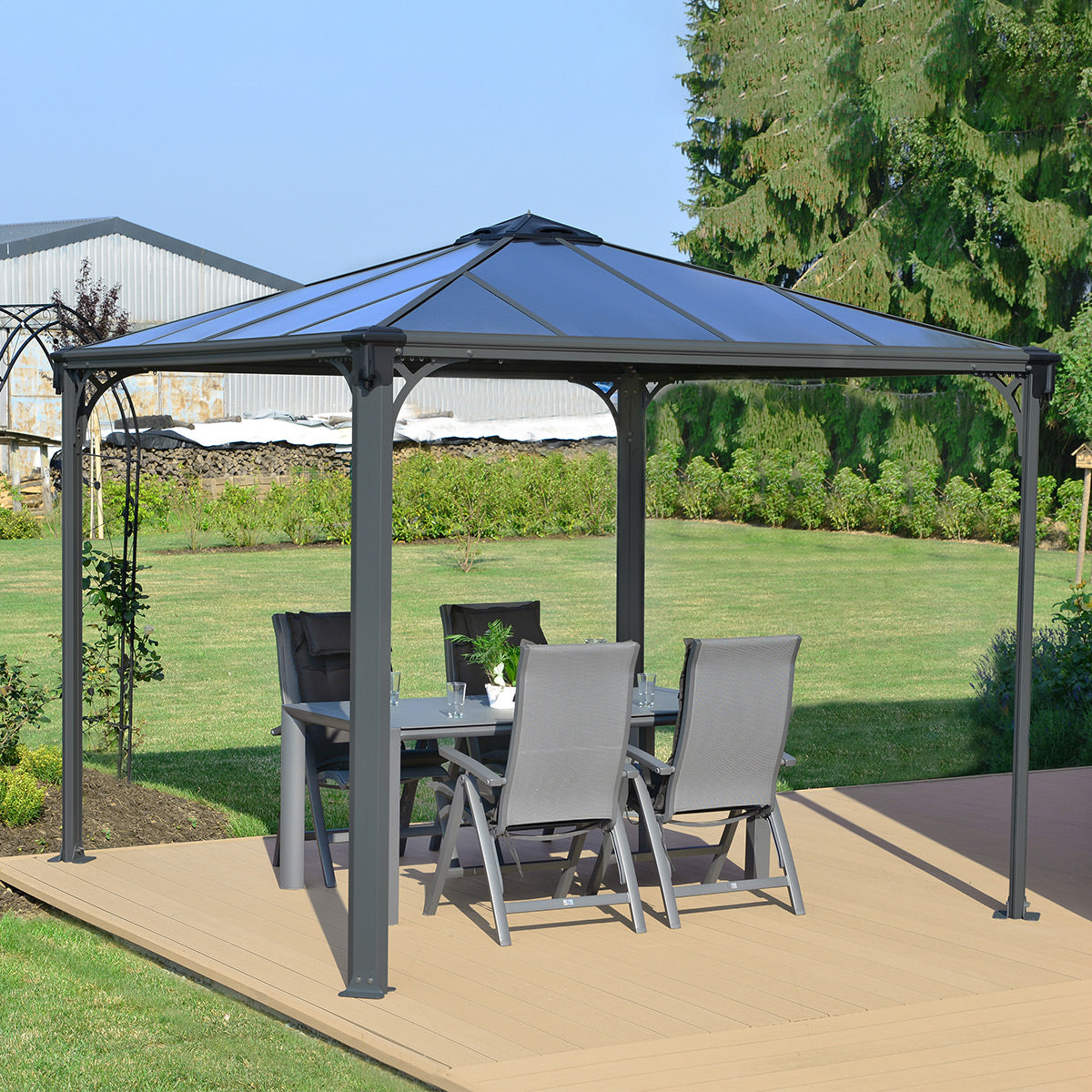 Canopia Grey Aluminium Palermo Garden Gazebo with Polycarbonate Roof