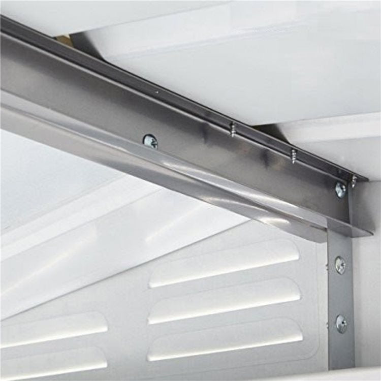 The Globel Double Hinged 8x6 shed is an apex roof shed designed for strength, durability, and ease of assembly. Manufactured from hot-dipped galvanised steel, this shed offers a modern, attractive appearance while providing robust storage solutions of metal garden sheds.