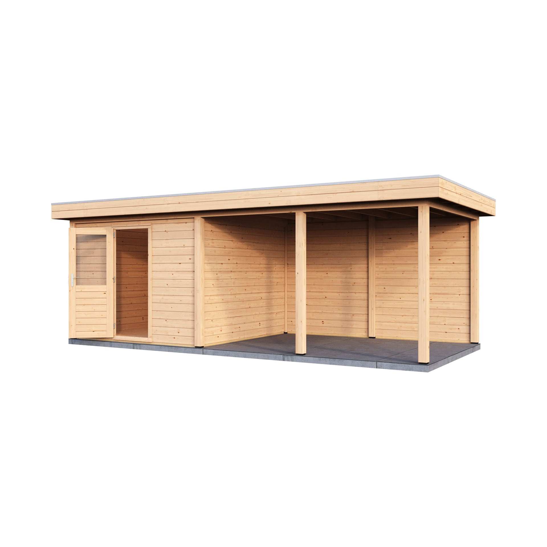 A highlight of the Lugarde Select Modern Range, this contemporary structure is available in untreated, brown oil, and black oil finishes. Built with 28mm kiln-dried spruce walls, it offers superior insulation and exceptional durability. The sleek flat roof design optimizes space while adding a touch of modern elegance to your garden.