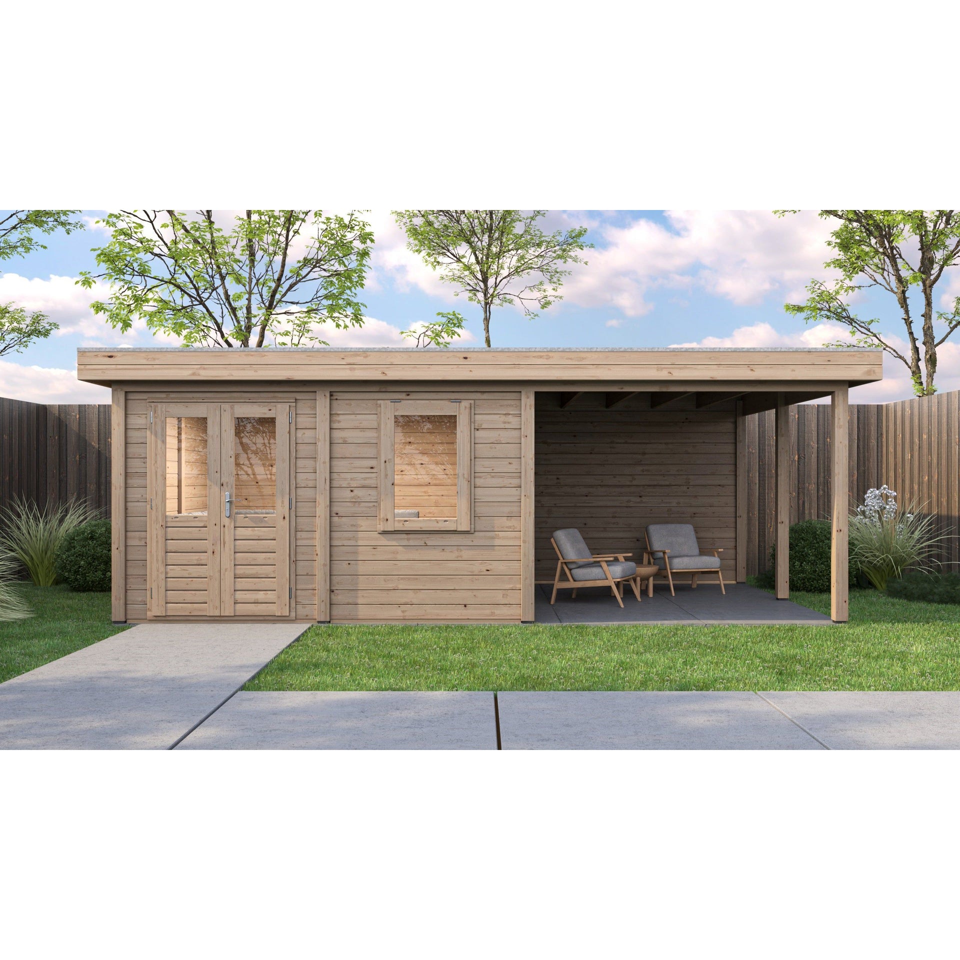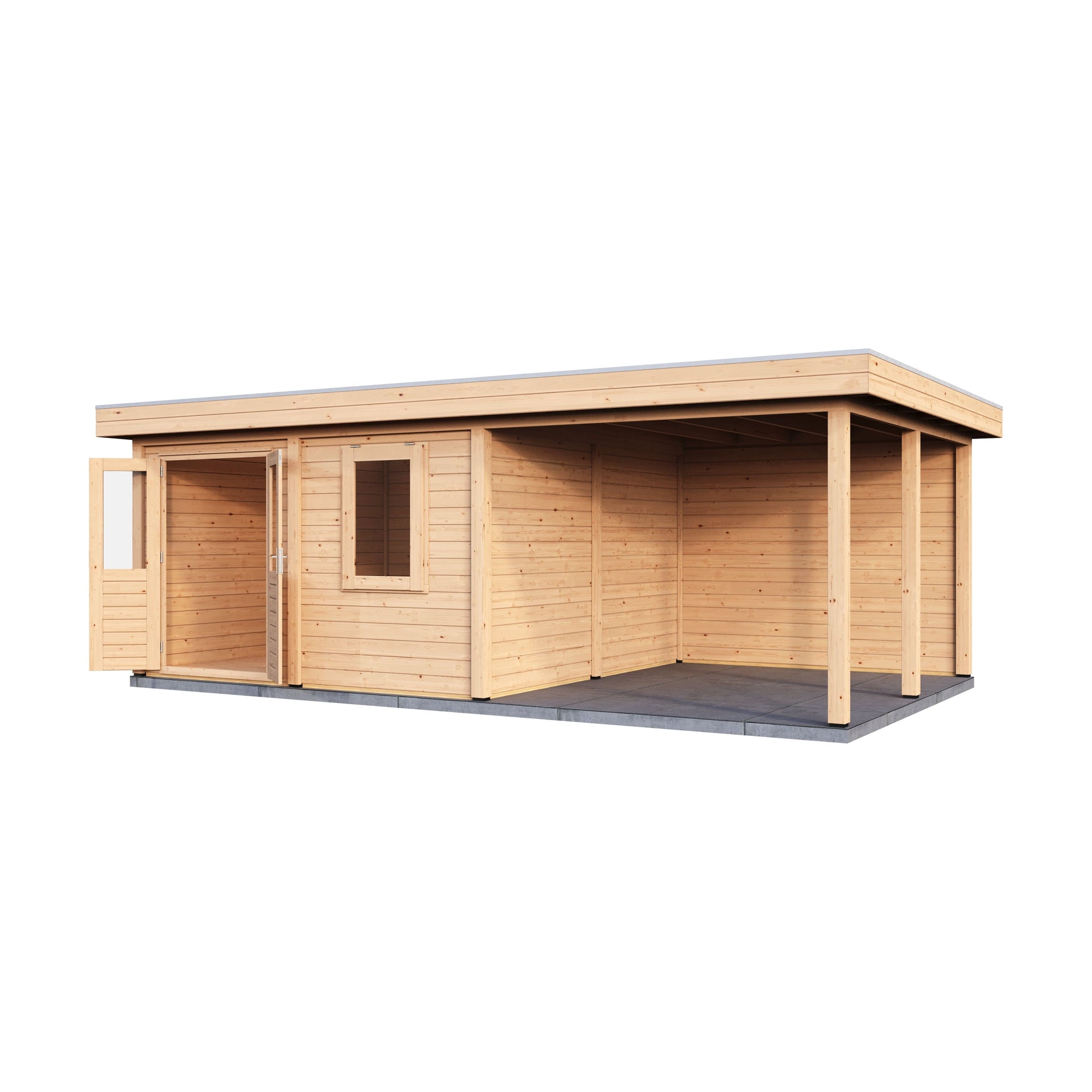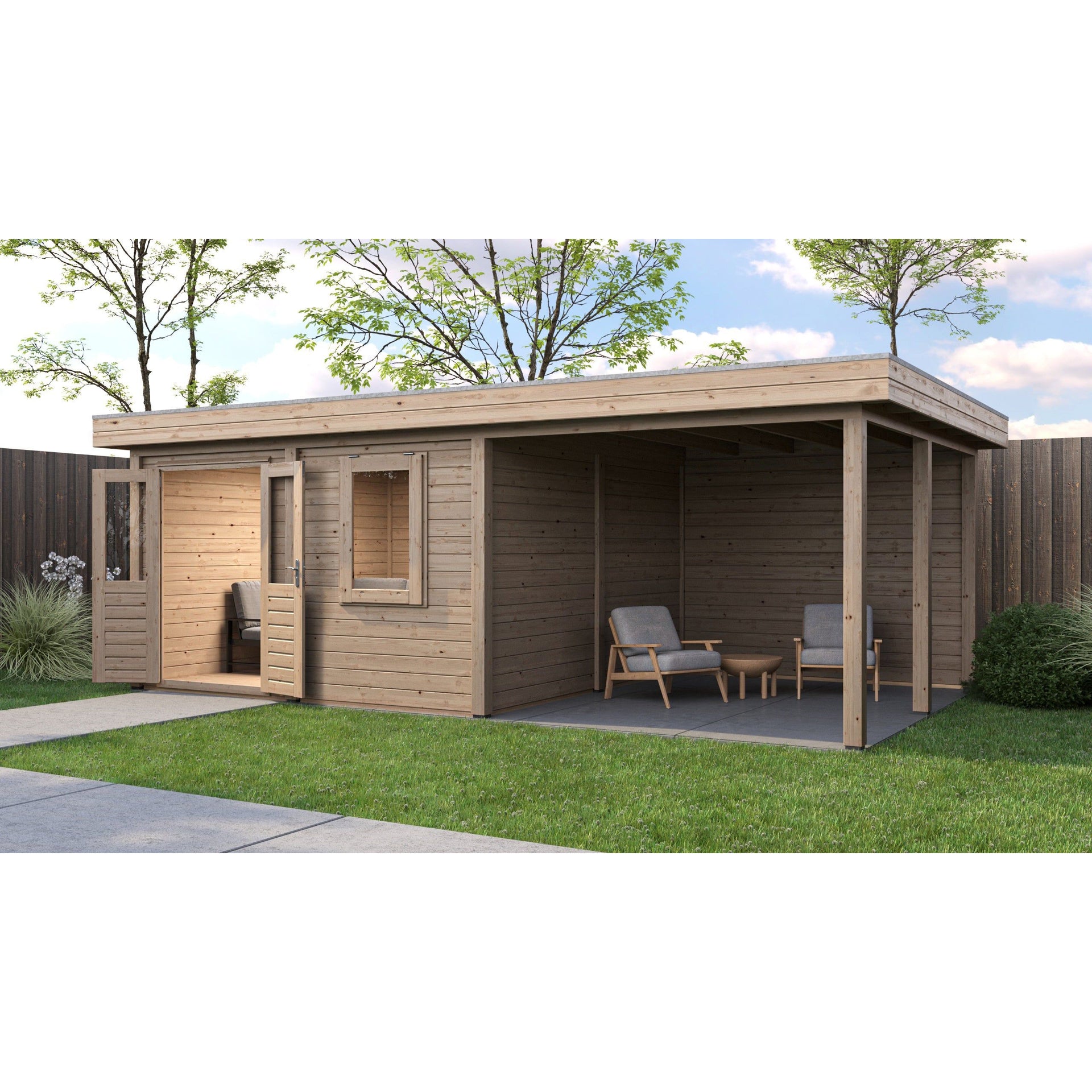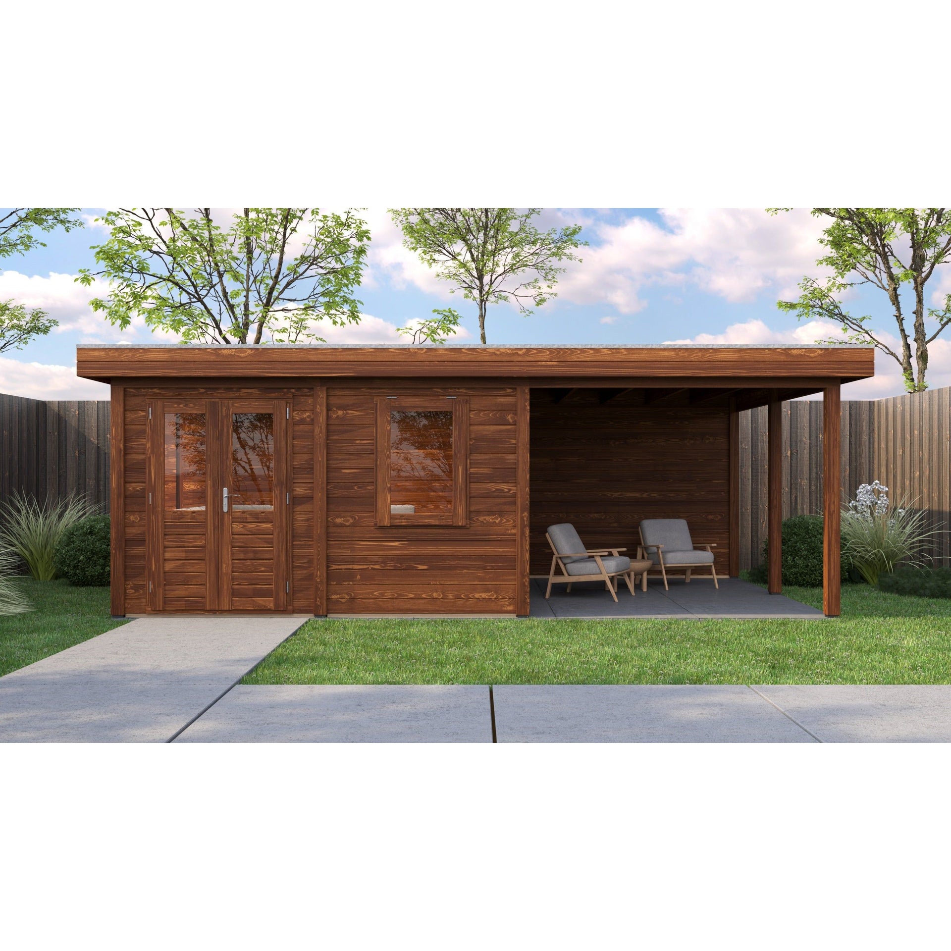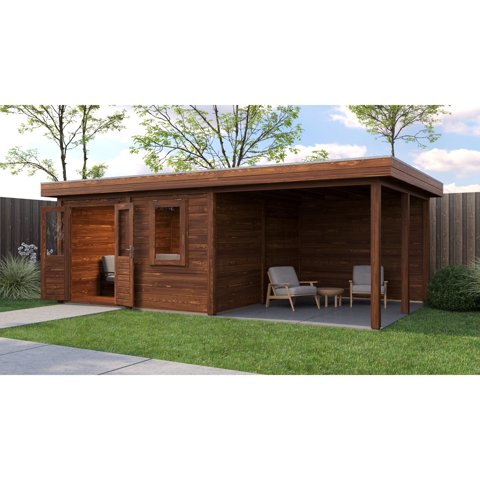 A standout from the Lugarde Select Modern Range, this elegant structure is available in untreated, brown oil, and black oil finishes. Built with 28mm kiln-dried spruce walls, it ensures excellent insulation and durability. Its sleek flat roof design maximizes space while adding a touch of modern sophistication to your garden.