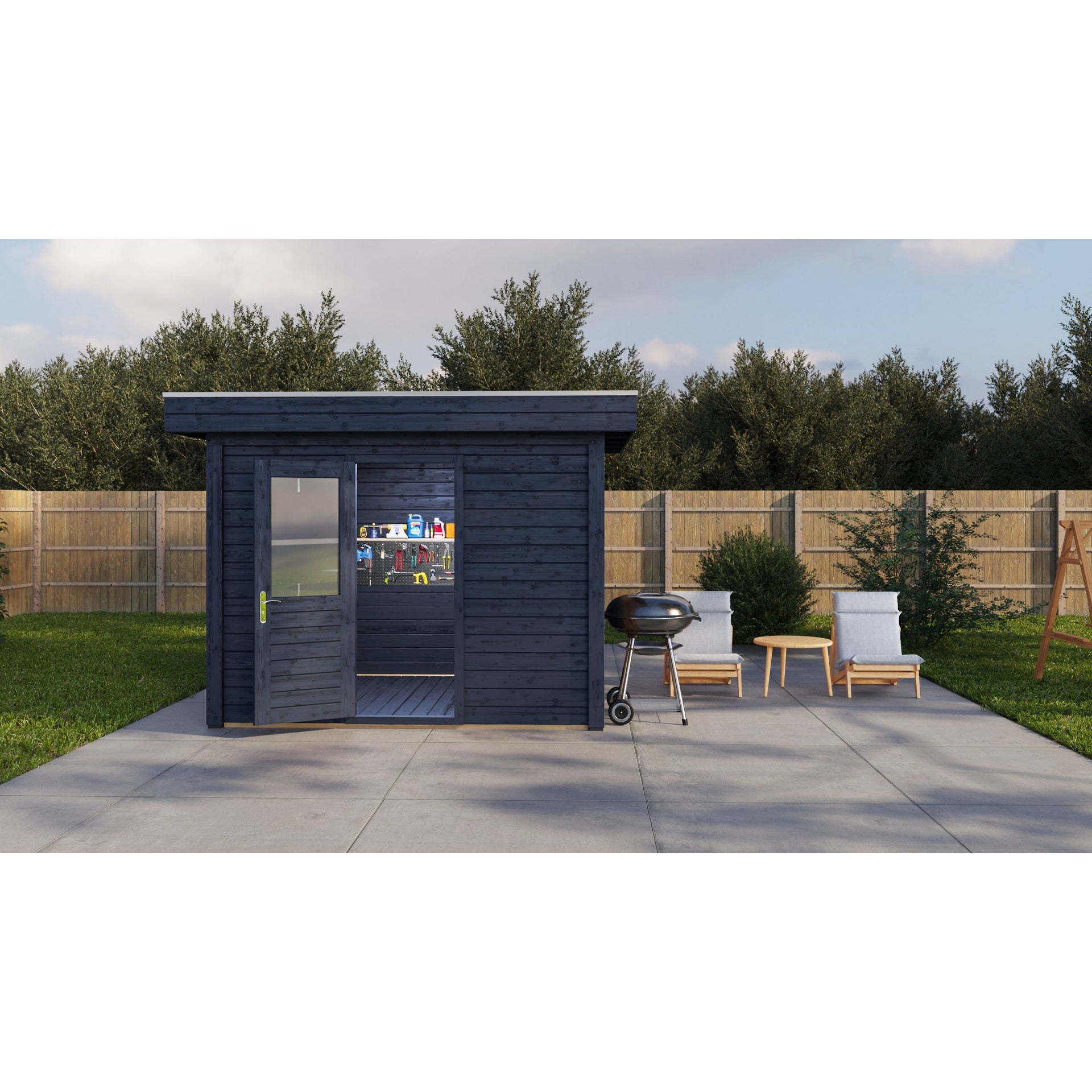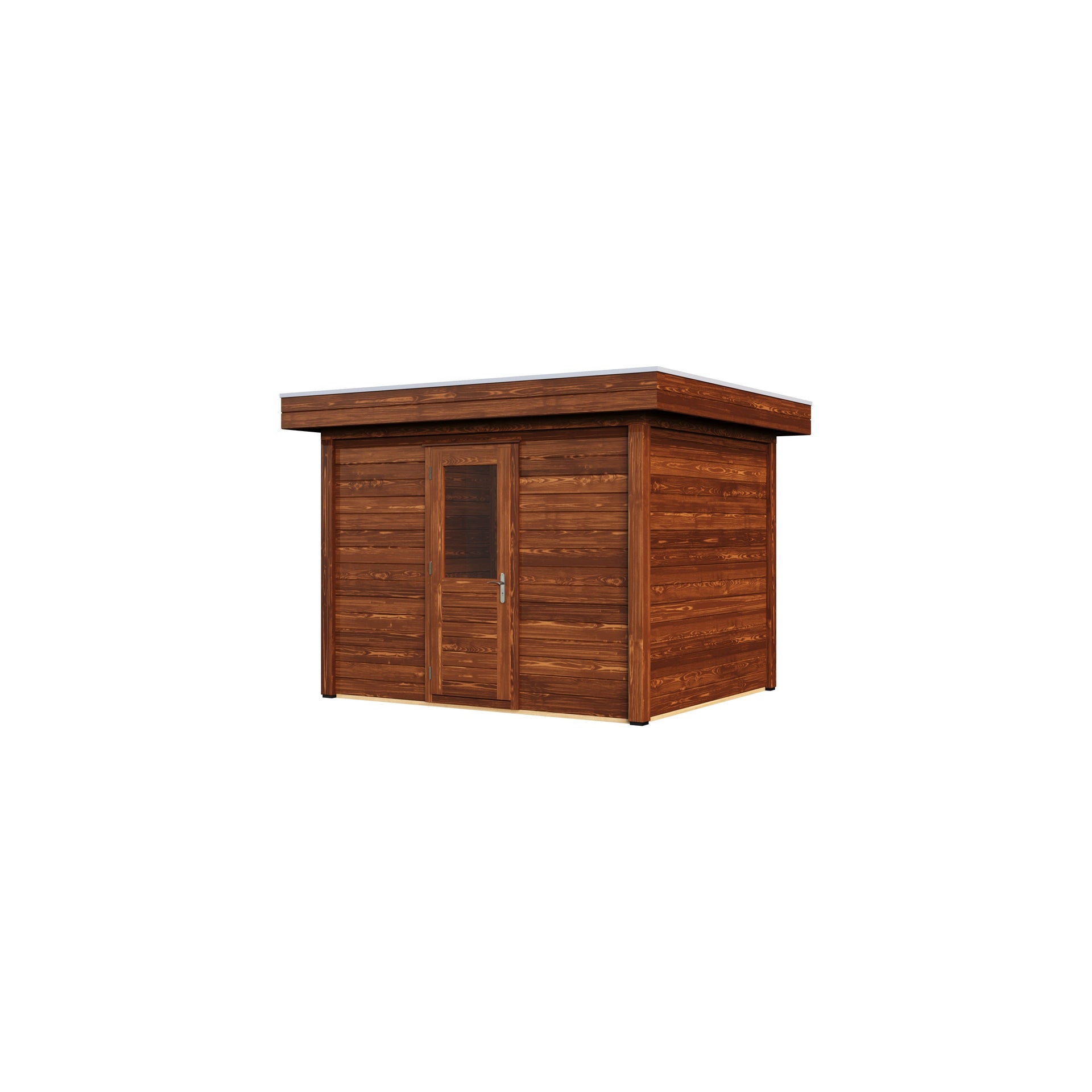 This sleek and stylish design, part of the Lugarde Select - Aberdeen Modern Range, is built from 28mm thick kiln-dried spruce walls, ensuring exceptional insulation and durability. With finishes in untreated, brown oil, or black oil, and a contemporary flat roof design, it’s a perfect addition to any garden.