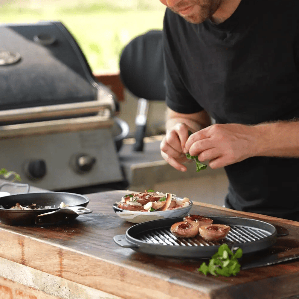 The Revolve Cast Iron Pan is a versatile tool that transforms your pizza oven into a multi-purpose cooking station. Expertly crafted from heavy-duty cast iron, it offers exceptional heat retention and even cooking, perfect for pan pizzas, steaks, seafood, and more.