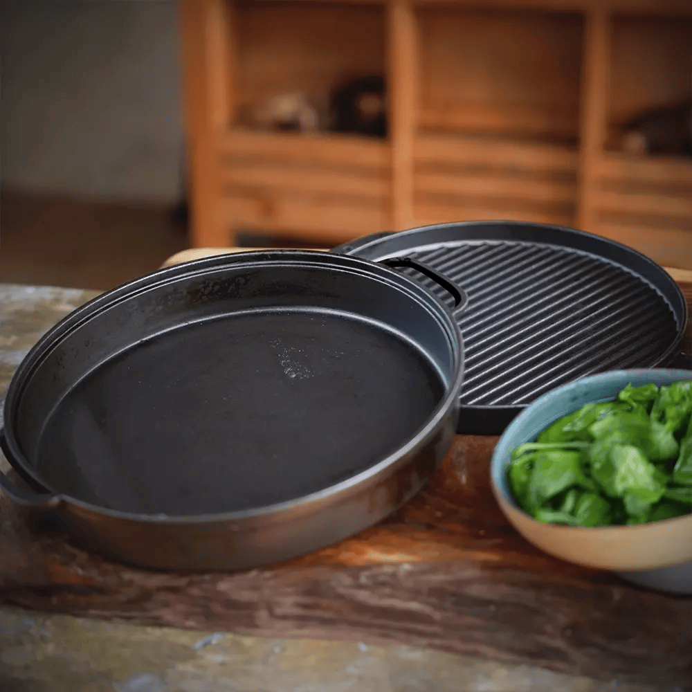 With two sides for endless possibilities, the griddle side is ideal for searing meats, sautéing vegetables, baking focaccia, and preparing desserts like crumbles. The smooth side doubles as a lid or a second pan for added convenience.