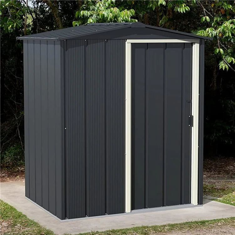 The Sapphire Metal Garden Shed is crafted from 0.33mm ribbed metal, designed for optimal weather resistance in outdoor settings. Its grooved wall construction enhances durability, while the hot-dipped galvanized steel prevents corrosion over time. Pre-cut and pre-drilled components simplify assembly, ensuring ease of setup.