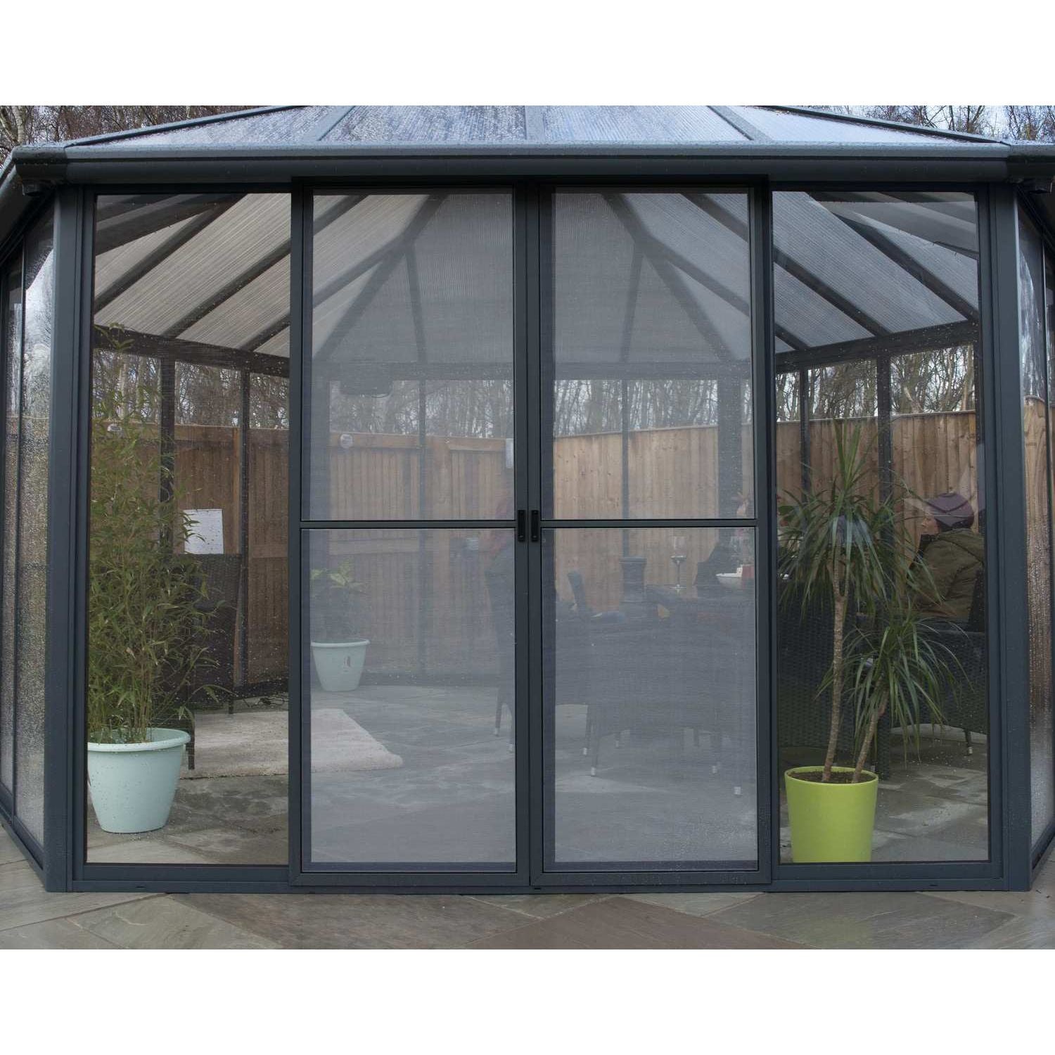 The Palram – Canopia Screen Door Set combines aesthetics with functionality, offering a solution to enjoy fresh air while keeping bugs out. Specifically designed for the SanRemo, it can be assembled on its own channel without removing the doors. Simply connect the pre-assembled sliding screen doors to any or all three sides for a seamless facade.