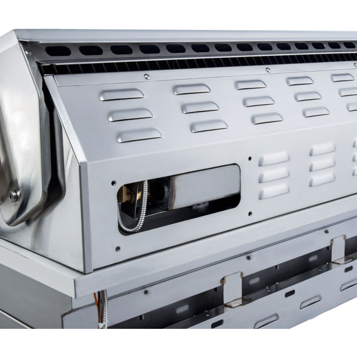 Introducing the Sunstone® 4 Burner RUBY series Gas Grill, a robust grilling masterpiece with a distinctive design flair. Crafted entirely from professional-grade 304 Stainless Steel, including the high-performance I-Burners boasting a minimum BTU output of 60,000. Plus, it features an additional 15,000 BTU Extra-Wide Rotisserie Back Burner and integrated Flame-Thrower Ignition in ALL burner positions. Packed with powerful performance and captivating features, this grill is a true standout.