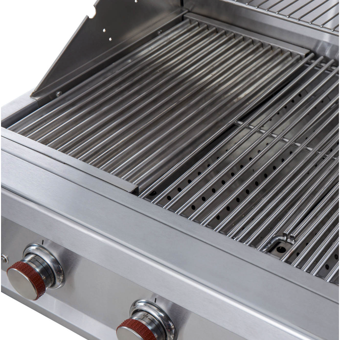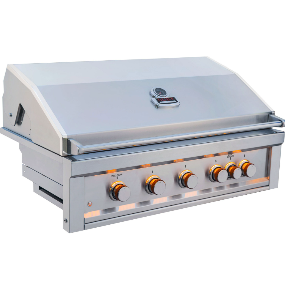 Introducing the Sunstone® 4 Burner RUBY series Gas Grill, a robust grilling masterpiece with a distinctive design flair. Crafted entirely from professional-grade 304 Stainless Steel, including the high-performance I-Burners boasting a minimum BTU output of 60,000. Plus, it features an additional 15,000 BTU Extra-Wide Rotisserie Back Burner and integrated Flame-Thrower Ignition in ALL burner positions. Packed with powerful performance and captivating features, this grill is a true standout.