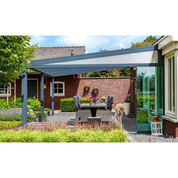 A key frame is designed to partially close one or more sides of your veranda, such as when it's adjacent to a fence or wall. It covers the sloped area between the roof and the top of the side wall. You can easily add a key frame to your order or mount it later if needed.