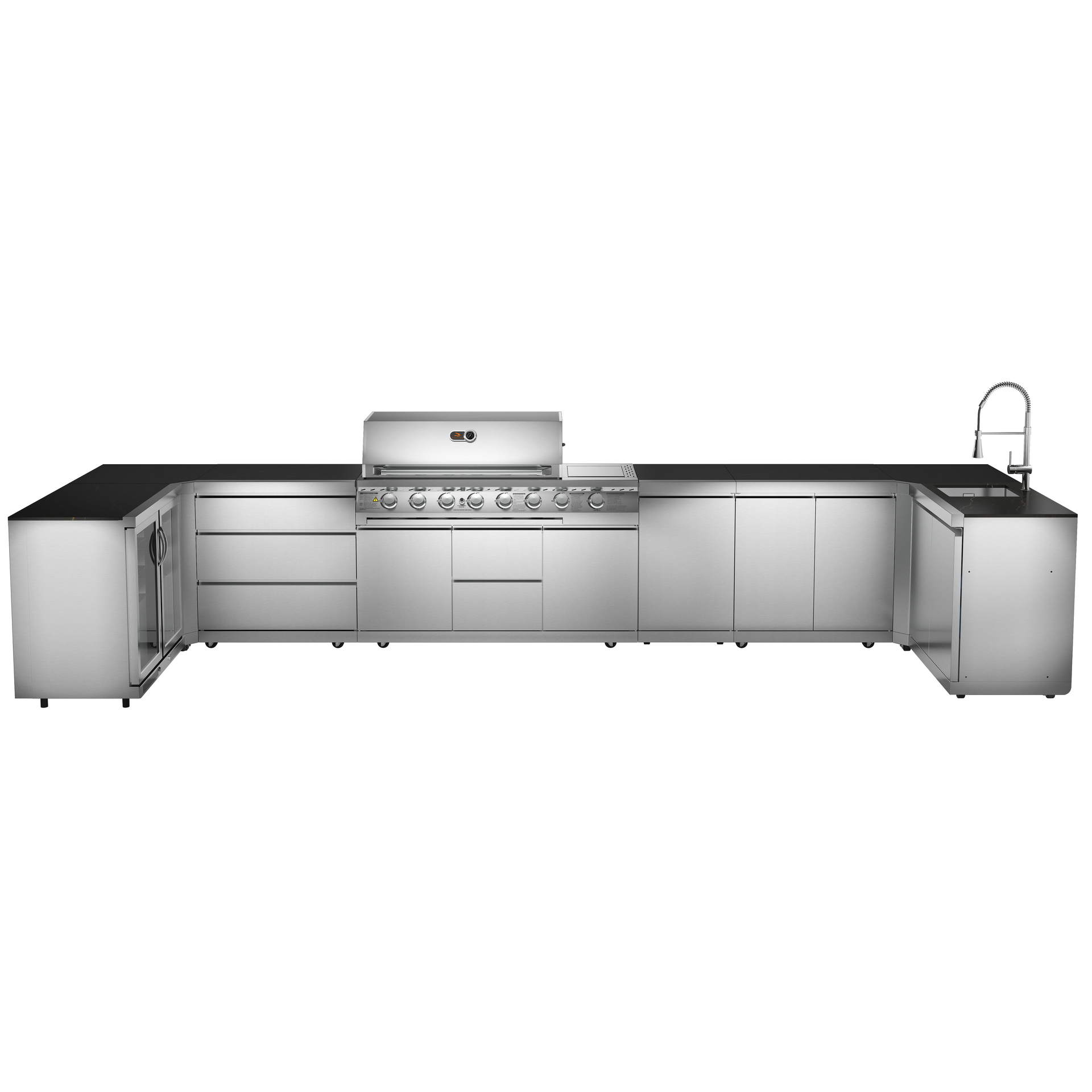 Moreover, the modular design permits easy alterations or expansions to your kitchen layout in the future. The modular units effortlessly connect using butterfly screws, facilitating convenient addition or removal of parts to tailor your outdoor kitchen to evolving preferences.